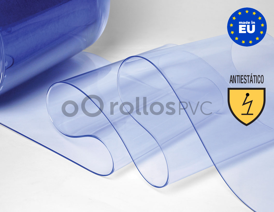 Rollo Lama PVC Flexible (50 metros lineales) 300x3mm Antiestático Transparente Azulado